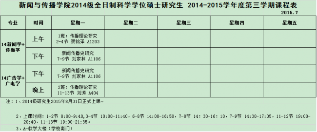 2014级全日制科学学位硕士研究生 2014-2015学年度第三学期课程表
