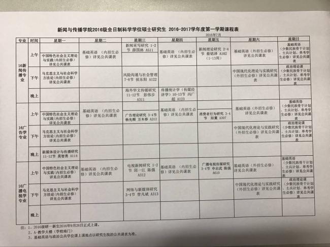 备注: 1、2016级研一新生2016年9月26日正式上课。 2、A-教学大楼(公司南门) 3、基