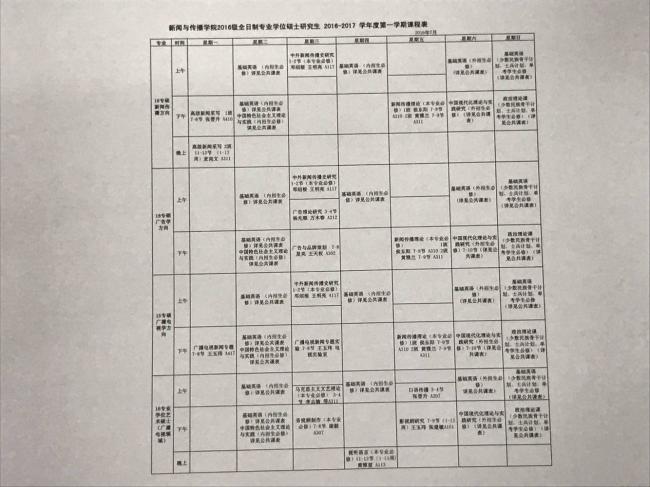 2016级全日制专业学位硕士2016-2017学年度第一学期课程表