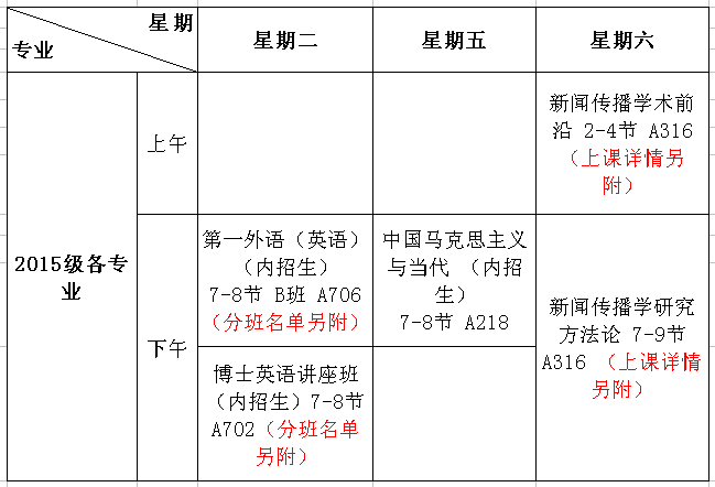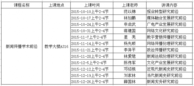 2015级秋季全日制博士生 2015-2016学年度第一学期课程表