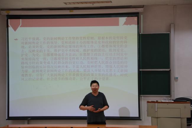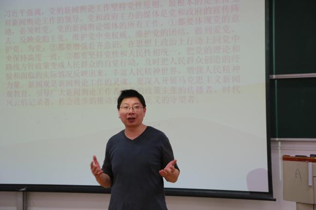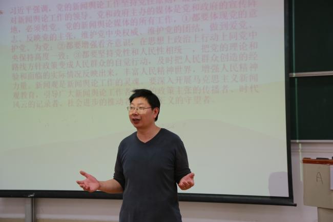 “笔下千钧重,肩头万斤担”, 坚持党性原则,新闻工作者要坚守职业操守,思想上增强“看齐”意识、行动上同党中央保持高度一致,新媒体环境下的媒体生态,越发要求记者有较强的学习能力和与时俱进的思维,各新闻单位也在逐步加强自身建设,加快培养造就一支政治坚定、业务精湛、作风优良、党和人民放心的新闻舆论工作队伍。正确认识和领悟新闻舆论工作的党性原则,对在座日后有志成为中国优秀媒体工作者具有重要意义。有鉴于此,邓绍根希望在座的同学们要多读书勤学习,提升个人素养,自觉学习领会习近平总书记关于新闻工作的讲话精神,深入了解中国的国情和国内外新闻舆论形势的变化,并结合自身的学科背景与学术专长开展深入的研究,能够对马克思主义新闻观有更为全面的认识、对如何提升一名新闻媒体工作者的综合素养有更加深刻的体会。