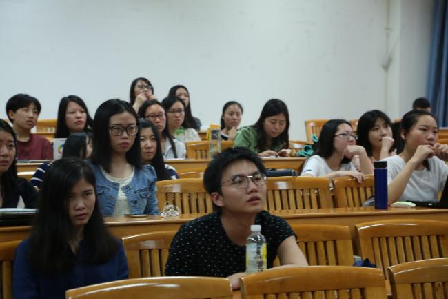 李志敏首先选取网上“papi酱”系列视频因主持人存在表述粗口、侮辱性语言等问题,被勒令整改下线去除粗口低俗内容,要求符合网络视听行业的节目审核通则要求后,才能重新上线的话题启发现场的同学们在面对社会各种舆论,作为一名新闻工作者又该怎样评论报道?在与同学们互动讨论后,她接着讲述了舆论与其传媒的关系,并重点对当前对“正面宣传为主”的理解误区及存在问题、怎样做好正面宣传、舆论监督及传媒的监督责任、加强和改进舆论监督,实现新闻舆论的正确有效引导四个方面进行了阐述。