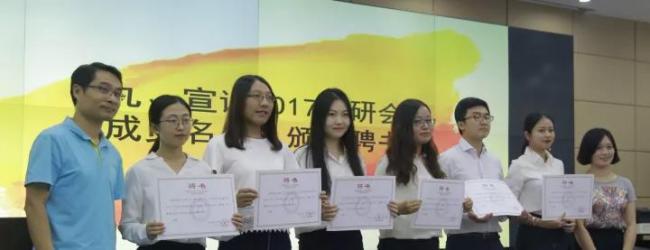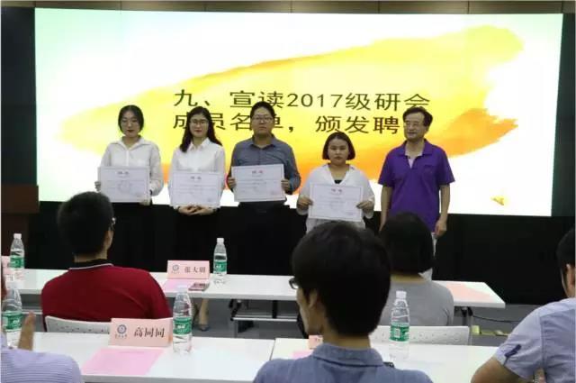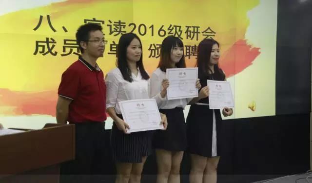 发言环节完毕后,张大朋副部长为与杨先顺书记、惠清明老师、张李莉老师一齐为16级新传研会主席团、17级新传研会主席团、部长团颁发聘书,并合影留念。