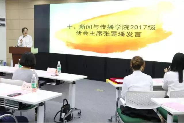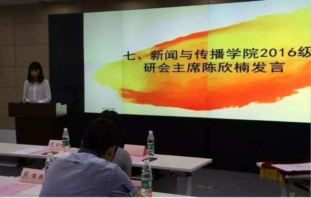 随后,研究生常务委员会委员长何琳芳、16级新传研会主席陈欣楠相继致辞,结合自己对研会的认识和自身工作经验对17级新传研会的同学们提出期望。