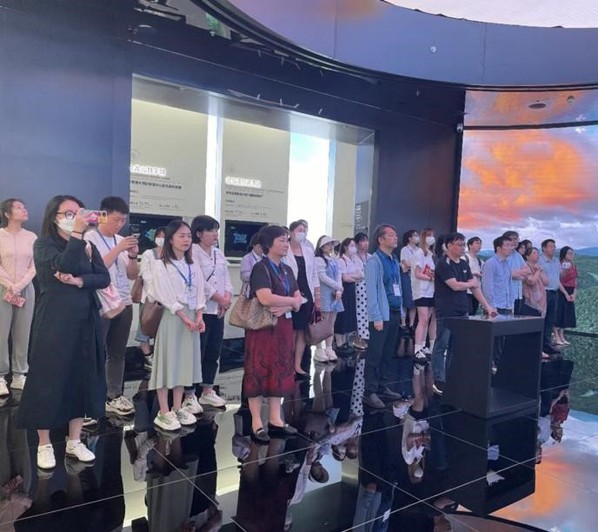 文化数字化是建设文化强国的重要抓手,是文化产业转型升级的内在要求,也是新闻传播学科和媒体创新发展的亟需回应的时代课题。在培训期间,公司师生还前往深圳市宝安区参观了第十九届(深圳)国际文化产业博览交易会,了解国内外文化数字化产业发展现状。作为中国唯一一个国家级、国际化、综合性的文化产业博览交易会,本届文博会设置数字文化馆、文化产业综合馆、粤港澳大湾区馆、文旅消费·一带一路国际馆、非遗·工艺美术·艺术设计馆等主题展馆,为学员们提供了一个了解中国文化产业发展、中华文化走出去现状的重要窗口。其中首次设立的“数字中国展区”和推出的数字文创产品“小雨滴”,更展现着新技术赋能传统文化的独特魅力。从交互式的虚拟展示,到AI文博会数字人,再到丝路沿线各国、各地区的非遗工艺品、民俗表演和文创产品展览,学员们深入了解文化数字化的新技术、新业态、新服务以及中华文化的创造性转化成果,为后续的科研教学工作带来了新的思路和启发。